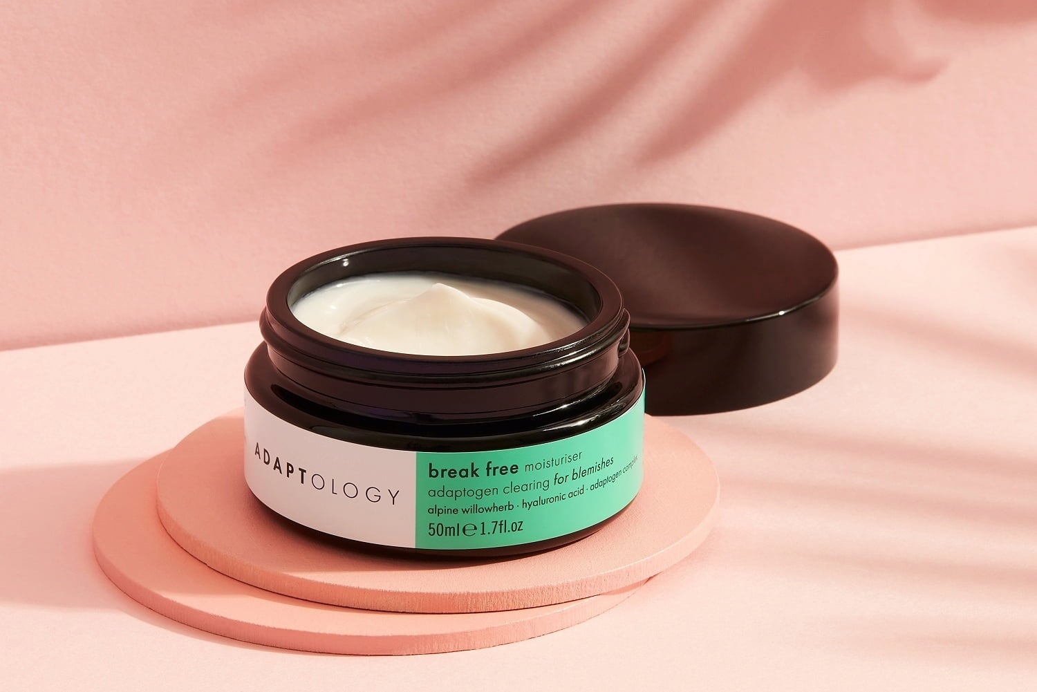 Der break free Moisturiser von Adaptology bringt unreine oder Mischhaut wieder in die richtige Balance. Formuliert mit Alpen-Weidenröschen, Weidenrinden-Extrakt und Hyaluronsäure verfeinert die Creme den Teint, pflegt die Haut und schützt vor Schäden durch freie Radikale, UV-Strahlung sowie Stress.
