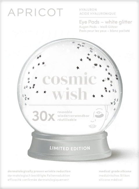 Die Hyaluron Augen-Pads in der Limited Edition Cosmic Wish von APRICOT pflegen und erfrischen deine Haut im Augenbereich im Handumdrehen. Hyaluron spendet intensive Feuchtigkeit und hilft, die Haut sanft zu glätten. Die Pads werden aus medizinischem Silikon hergestellt, wodurch sie besonders weich und angenehm in der Anwendung sind. Du kannst die Pads bis zu 30x wiederverwenden.