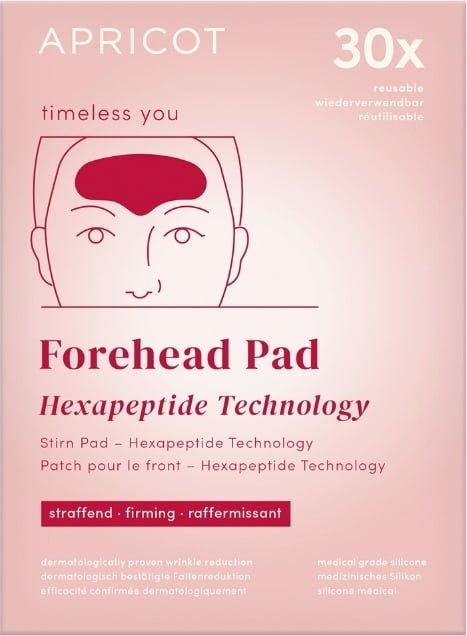Das Stirn-Pad mit Hexapeptid von APRICOT wurde speziell für die Pflege der Stirnpartie entwickelt und lässt sich unkompliziert in deine Beauty-Routine integrieren. Die Formel mit Hexapeptid-Komplex unterstützt im Handumdrehen ein gepflegtes Hautgefühl und ein spürbar geglättetes Hautbild. Hergestellt wird das Pad aus medizinischem Silikon. Es ist bis zu 30x wiederverwendbar.