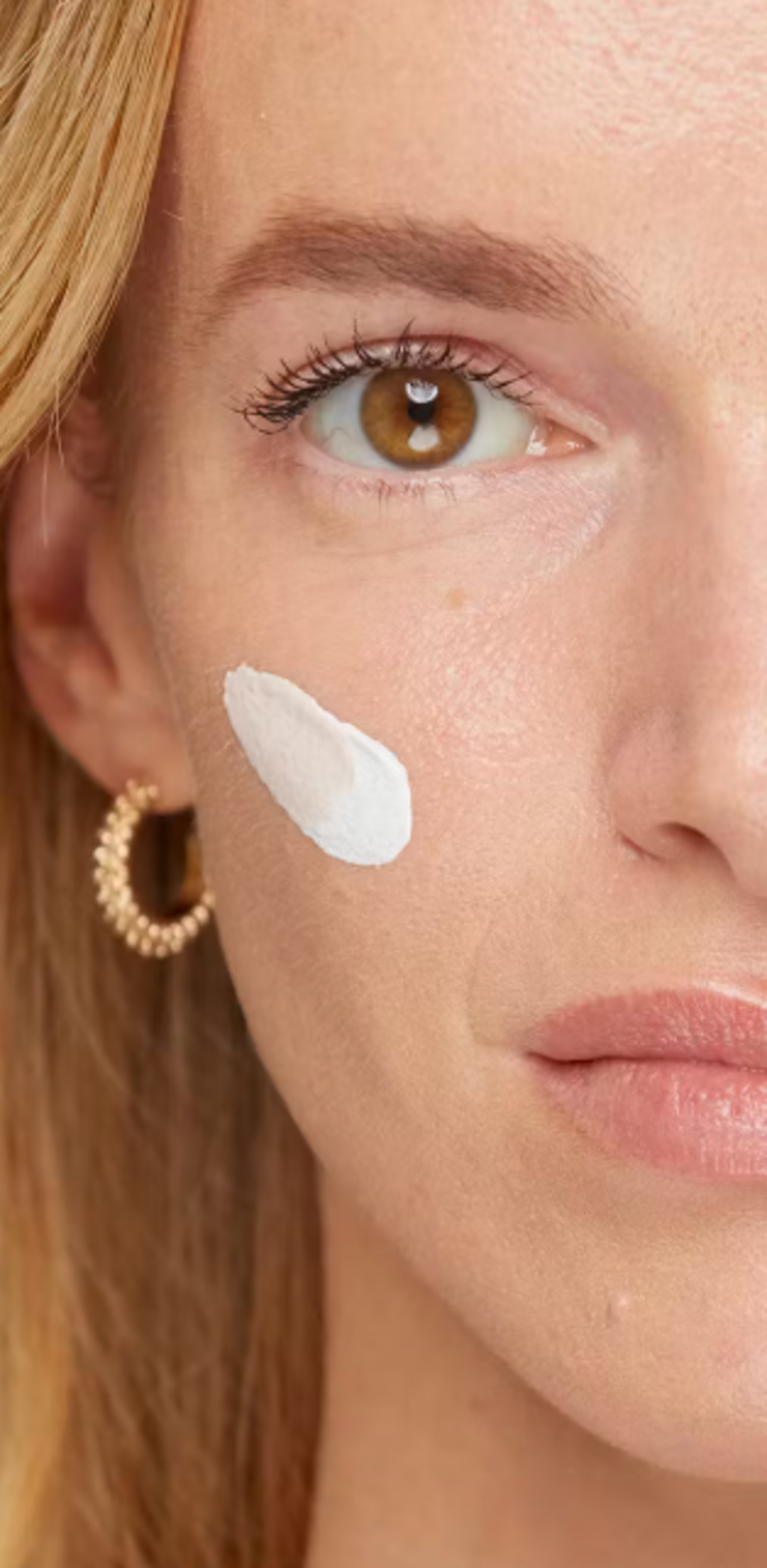 • Mit den Fingern eine haselnussgroße Mengen der Creme auf das Gesicht und den Hals auftragen.