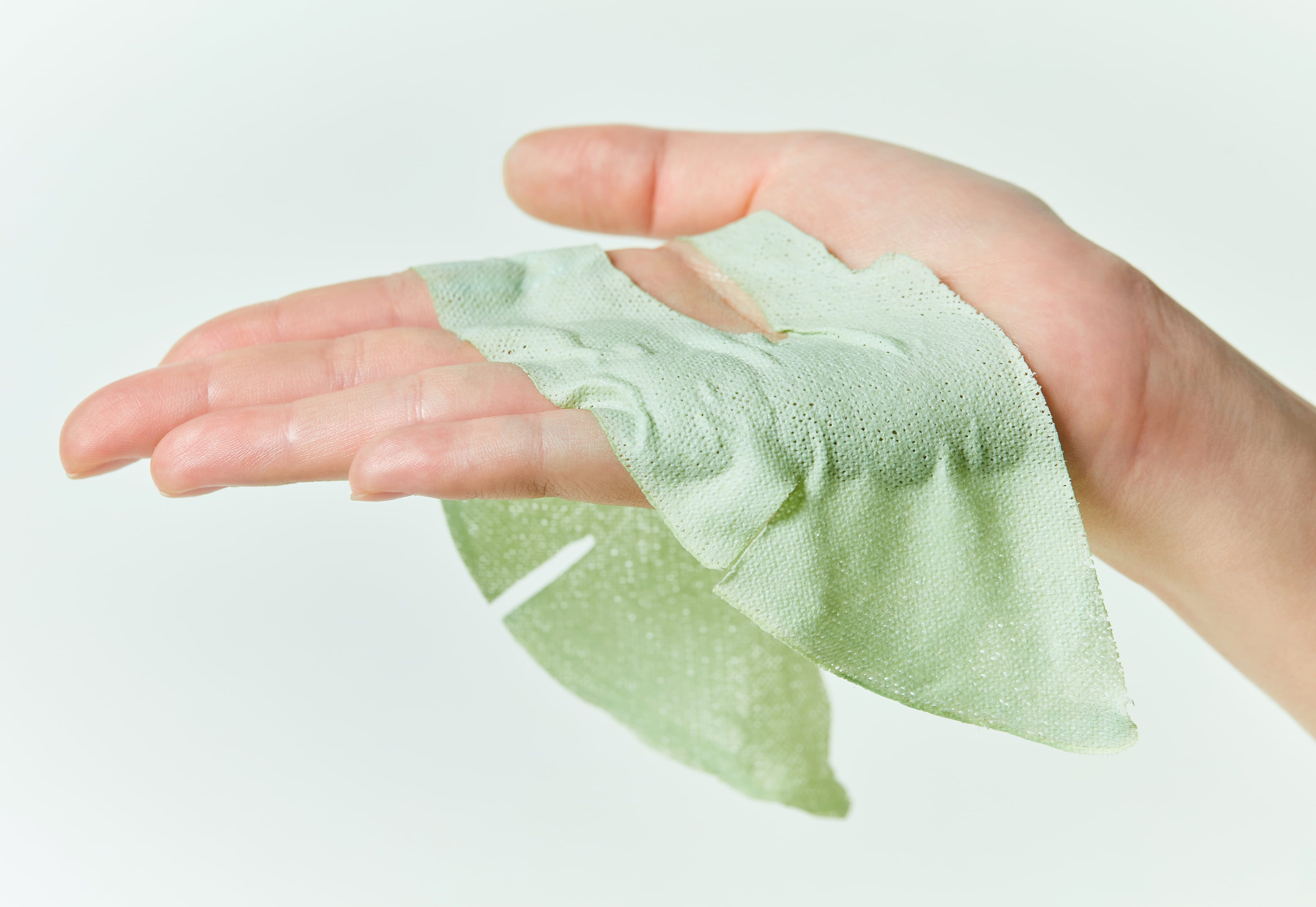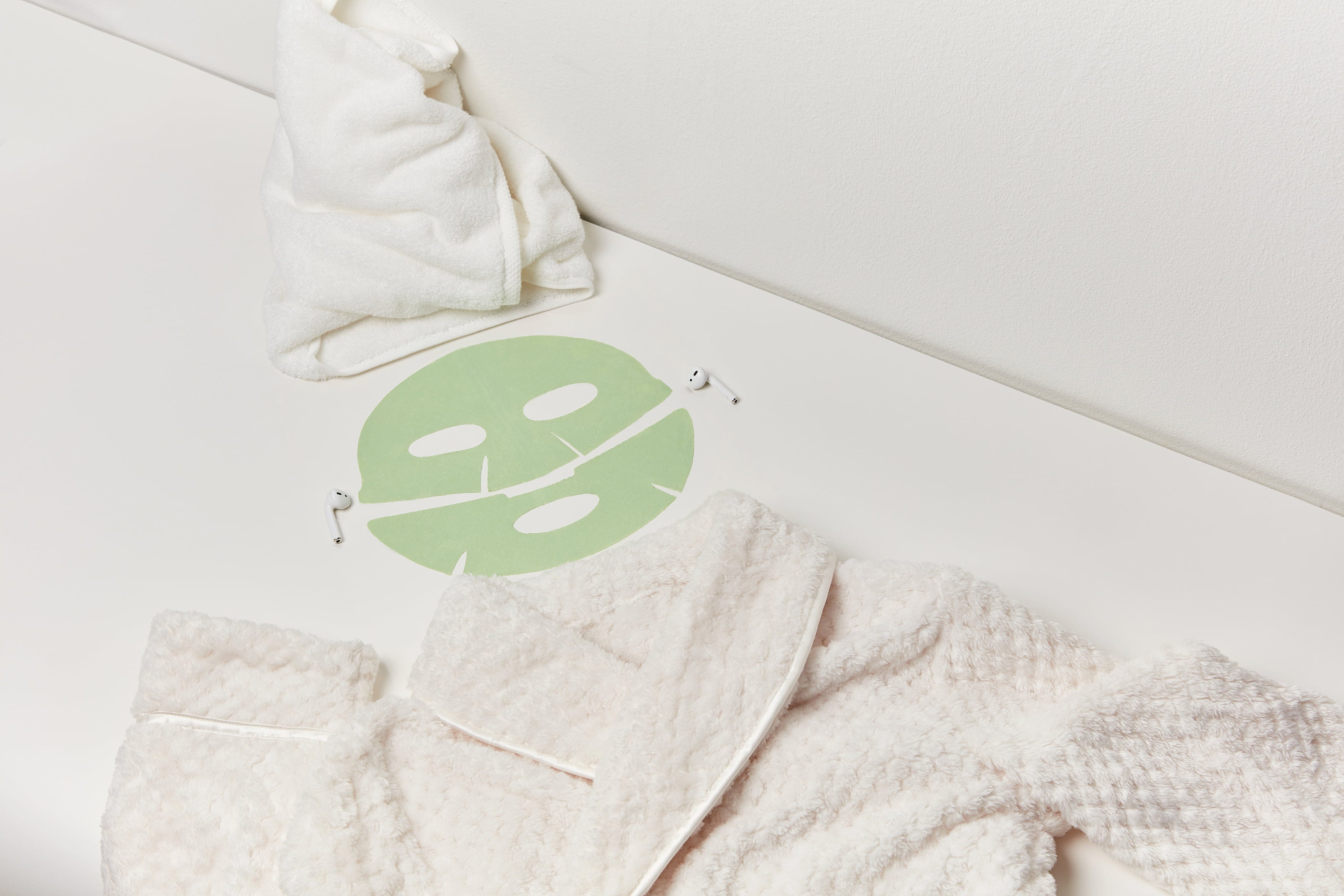 - Lege die Tuchmaske auf die gereinigte Haut.
