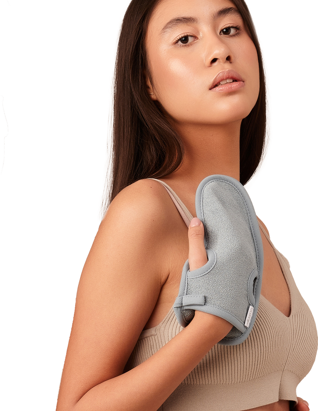 - Den Body Wash & Peeling Mitt in der Dusche verwenden.