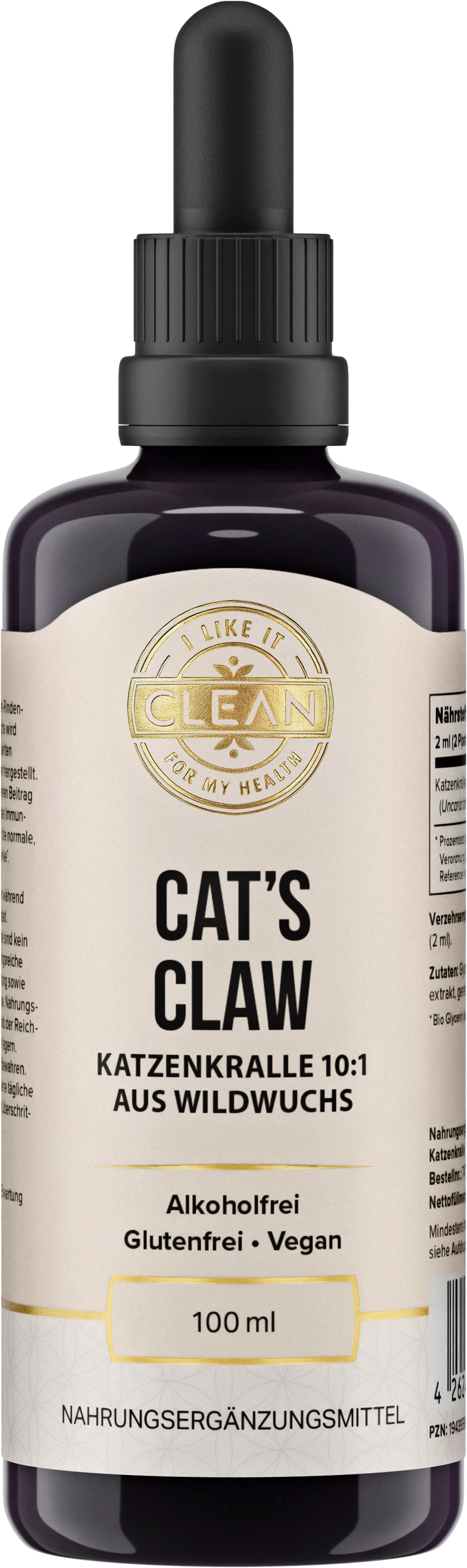 Die Katzenkralle für dieses Flüssigextrakt von i like it clean stammt aus Wildwuchs. Für das Extrakt wird ausschließlich die Rinde der Pflanze verarbeitet. Die Rinde hat den höchsten Anteil an bioaktiven Stoffen. Das Extrakt ist vegan und alkoholfrei. Es wird auf Wasserbasis hergestellt.