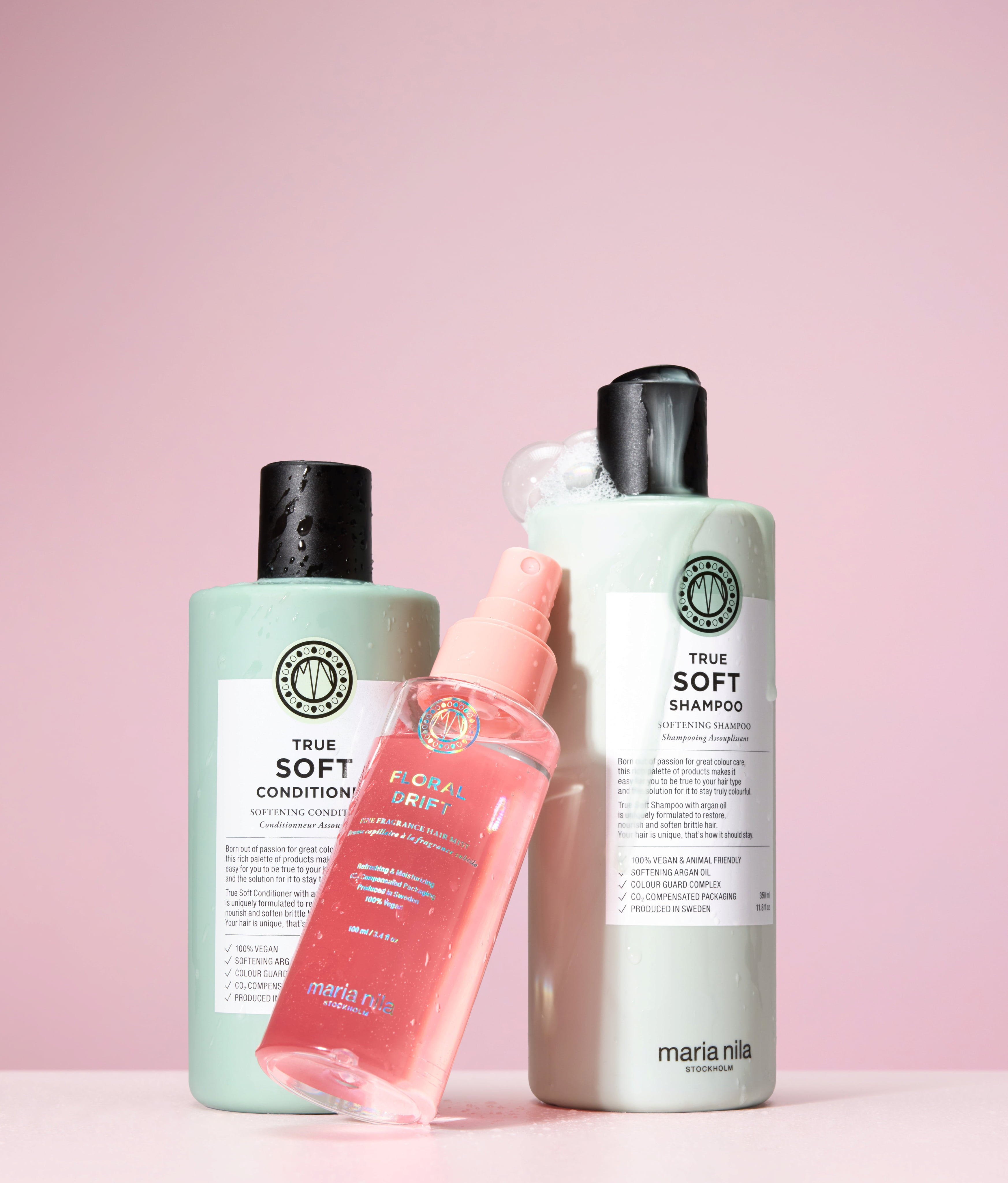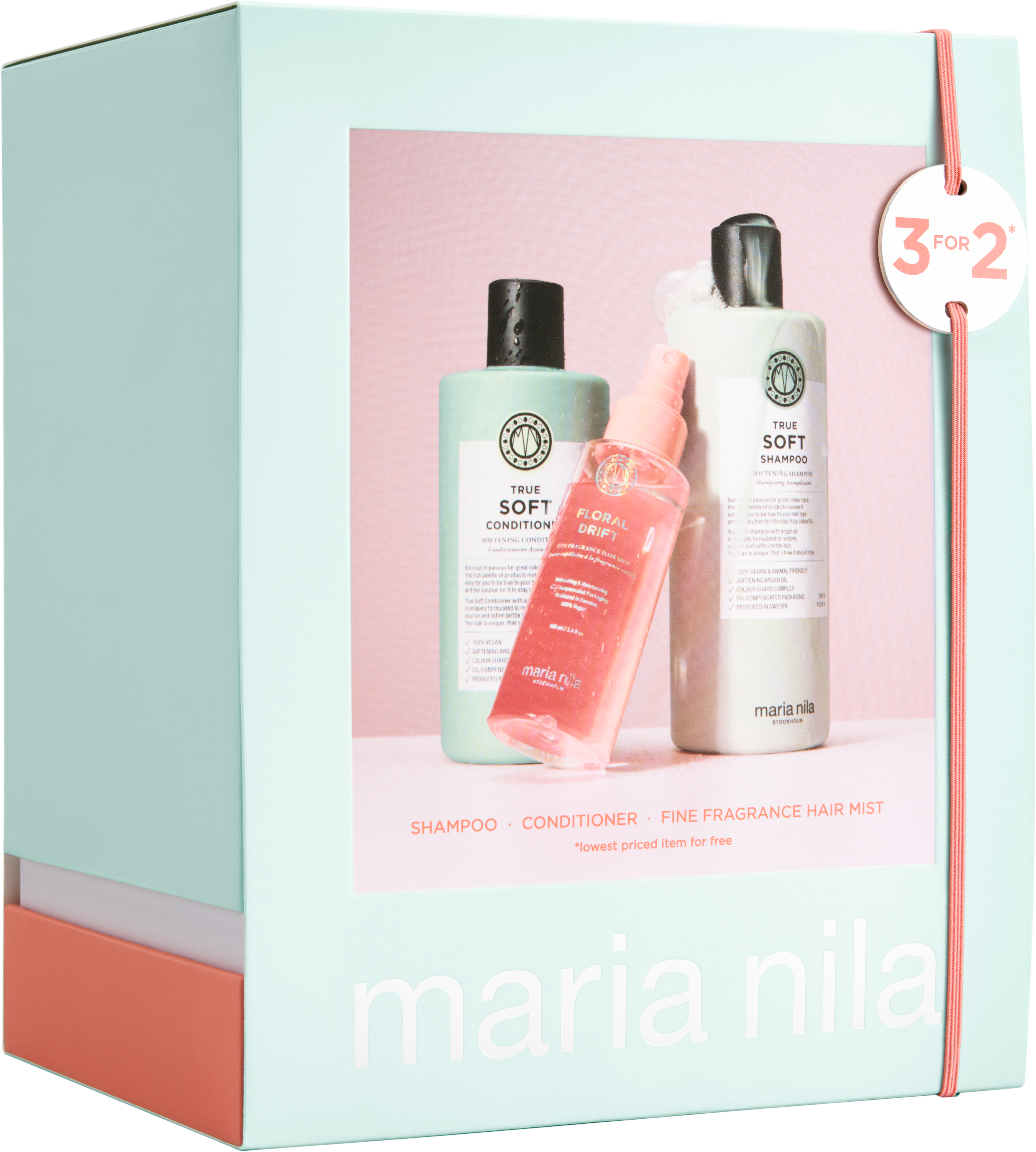 Die Holiday Box True Soft vereint drei perfekt aufeinander abgestimmte Produkte aus der True Soft Haarpflege-Linie von Maria Nila. Sowohl Shampoo, Conditioner als auch der Hair Mist eignen sich ideal für trockene Haartypen und sorgen für die richtige feuchtigkeitsspendende Pflege sowie für eine schöne Glanzgebung. Verpackt in einer hübsch designten, wiederverwendbaren Box, macht sich das Set ideal als Geschenk für deine Liebsten.