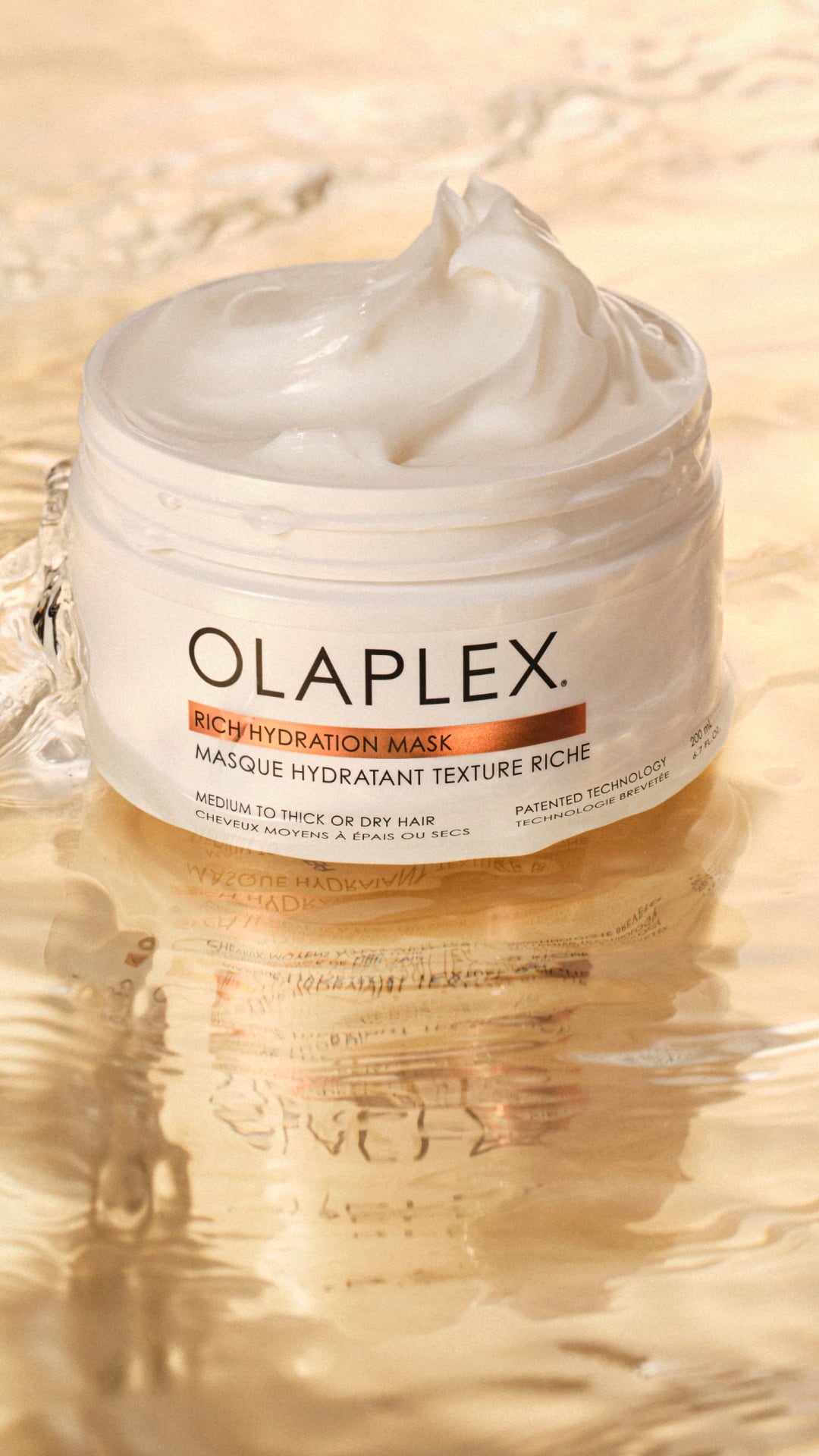 Die Rich Hydration Mask von Olaplex wurde speziell für dehydriertes sowie mittelstarkes bis kräftiges Haar entwickelt. Mit der einzigartigen OLAPLEX Biomimetic Cuticle Technology™ versiegelt die Maske die Haarkutikula und schließt Feuchtigkeit langanhaltend ein, sodass deine Haare für bis zu fünf Haarwäschen geschützt und gepflegt werden. Die gehaltvolle Pflege bewahrt außerdem vor Haarbruch, kontrolliert Frizz und verleiht unglaublich schönen Glanz.