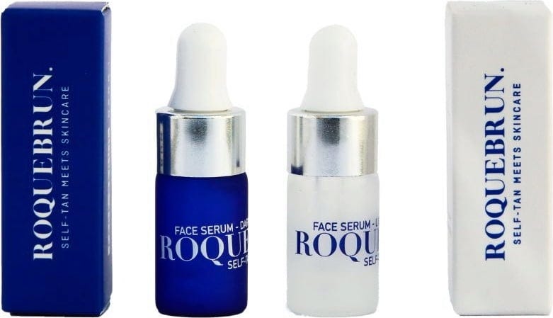 Das Sample Set von ROQUEBRUN beinhaltet zwei Selbstbräuner-Seren, welche dir einen natürlich aussehenden gebräunten Teint verleihen und der Haut gleichzeitig intensive Feuchtigkeit spenden. Du kannst die Seren direkt auf deine gereinigte Haut auftragen oder auch in Kombination mit deinen täglichen Pflegeprodukten verwenden. Hochwertige Inhaltsstoffe wie pflanzliches Retinol, Hyaluronsäure, Kollagen und Aloe Vera unterstützen dich außerdem bei deiner Pflegeroutine und glätten, festigen und besänftigen die Haut. Die Selbstbräuner-Seren eignen sich für alle Hauttypen, können morgens und abends angewendet werden und schenken dir eine natürliche Bräune ohne orangefarbenen Stich. Die leichten, nicht fettenden Texturen ziehen rasch ein, sind duftneutral und zeigen Ergebnisse innerhalb von 4-8 Stunden, die 3-4 Tage anhalten. Genieße einen sonnengeküssten Teint, während du gleichzeitig deine Hautpflegeroutine optimierst.