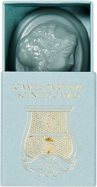 Die Scented Cameo Figuerie von Trudon ist ein modernes Raumduftkonzept aus Wachs, das beim Erhitzen schmilzt und seinen Duft verbreitet. Das Wachsstück zeigt ein kunstvoll geformtes Frauenprofil.