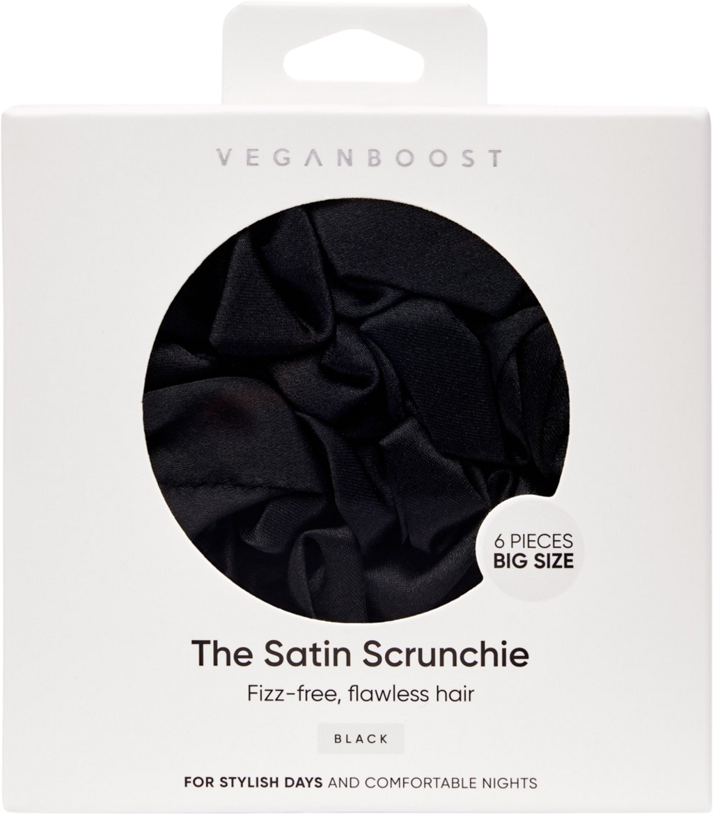 Veganboost Satin Scrunchie Big Size, Schwarz (6 Stk)